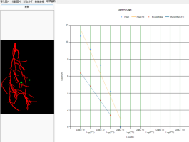 v 軟件能進(jìn)行根系的拓?fù)浞治觯詣?dòng)確定根的連接數(shù)、關(guān)系角等,還能單獨(dú)地自動(dòng)分析主根或任意一支側(cè)根的長(zhǎng)度和分叉數(shù)等,可單獨(dú)顯示標(biāo)記根系的任意直徑段相應(yīng)各參數(shù)。
